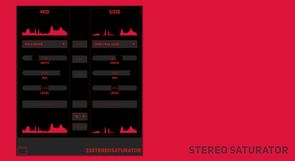 23StereoSaturation is a premium stereo saturation processor that gives you unprecedented control over your sound. Process mid and side channels independently with 22 meticulously crafted saturation algorithms to add warmth, character, and dimension to your tracks.