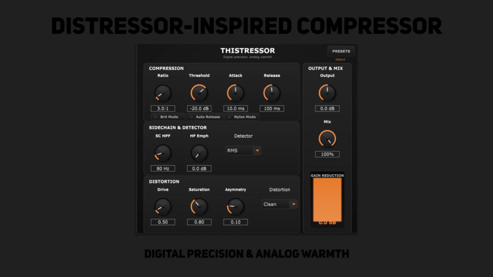 Thistressor is a Distressor-inspired compressor with: